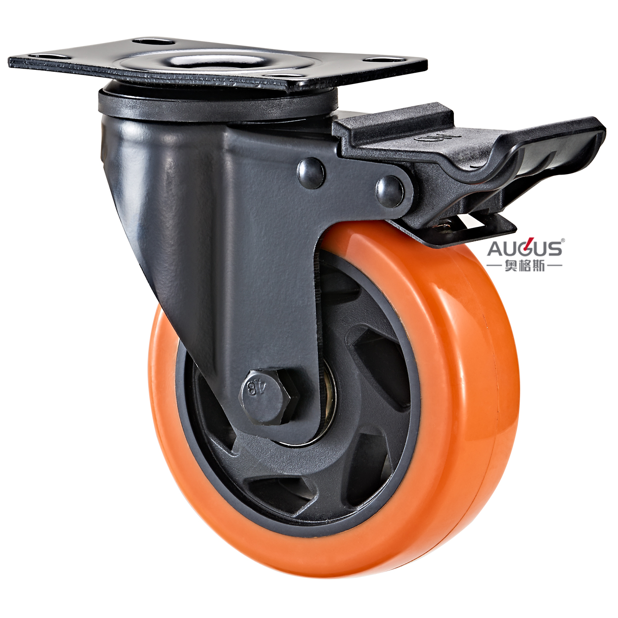 L-version medium-sized orange edge black core flower PU directional universal oven casters