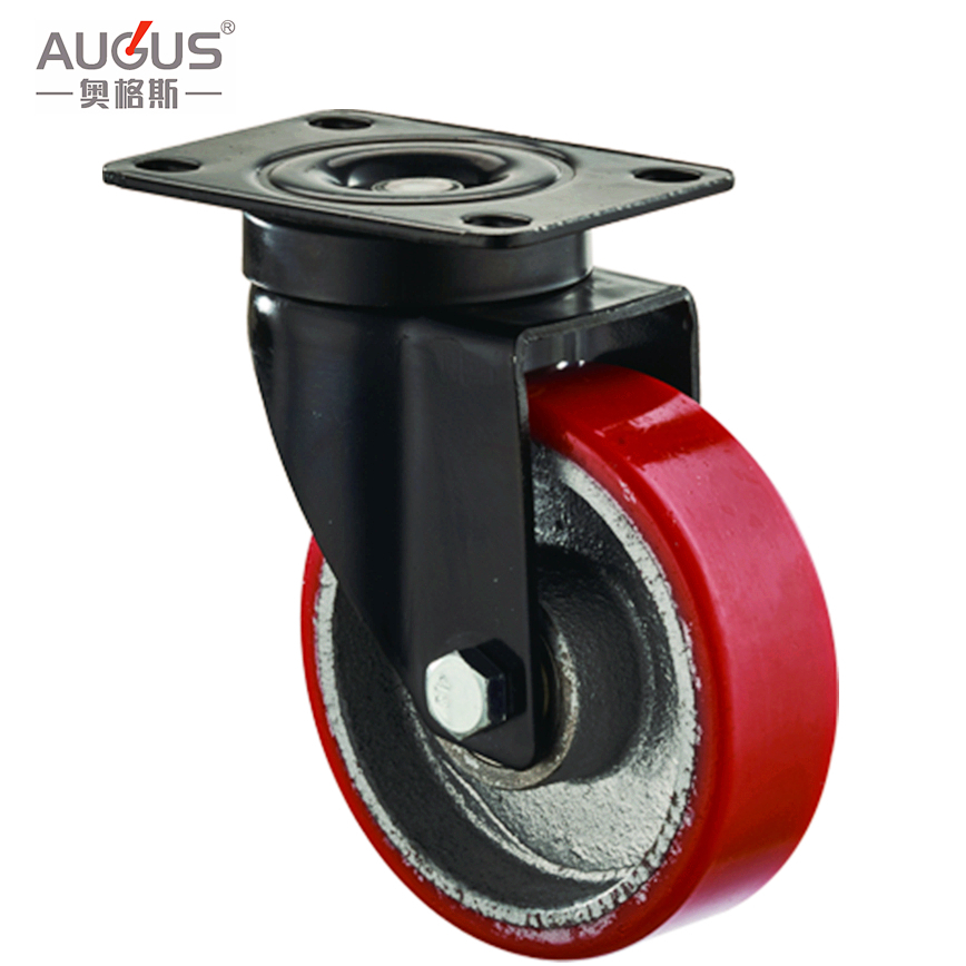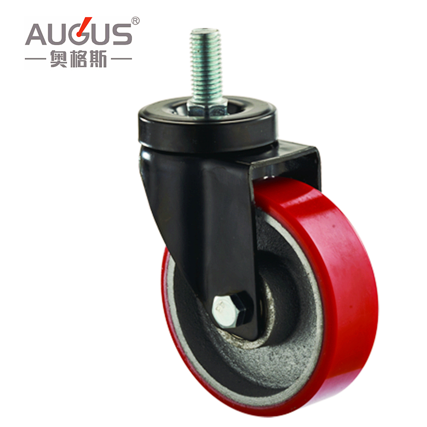 MEDIUM DUTY RED PU TREAD WITH IRON CORE DOUBLE BEARING